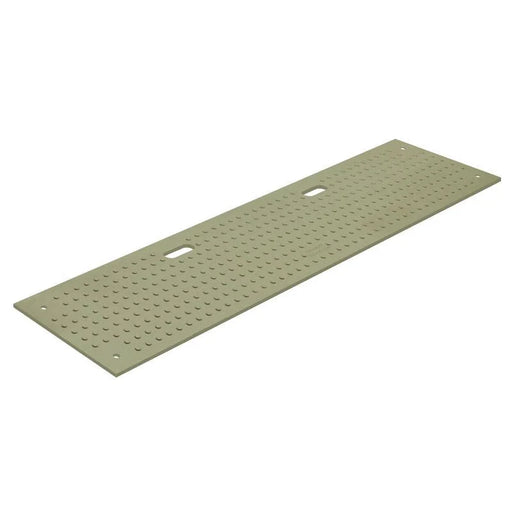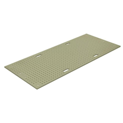 TrakMat® ground protection has a load bearing capacity of up to 90 tons. It is designed to allow large vehicles to easily traverse over grass, sidewalks, driveways and more without causing damage. TrakMat® ground protection mats prevent vehicles from getting stuck in muddy, wet, and unstable ground conditions and is ideal for use within construction, landscaping, utilities, events and leisure industries. TrakMat® has a flexible construction allowing the mats to contour along undulating or sloping ground conditions, preventing rutting or damage to turf. TrakMat® features a unique power cylinder tread surface on both sides of the mat to improve grip and forward motion of vehicles, with connector points on each corner, we can provide two or four-way tough urethane connectors and stay-put u-stakes to prevent mats from moving creating a firm trackway or work pad. The mat can easily be deployed by a two-person team due to its lightweight design. TrakMat® ground protection also features 2 hand holes along each long edge to ensure ease of handling.